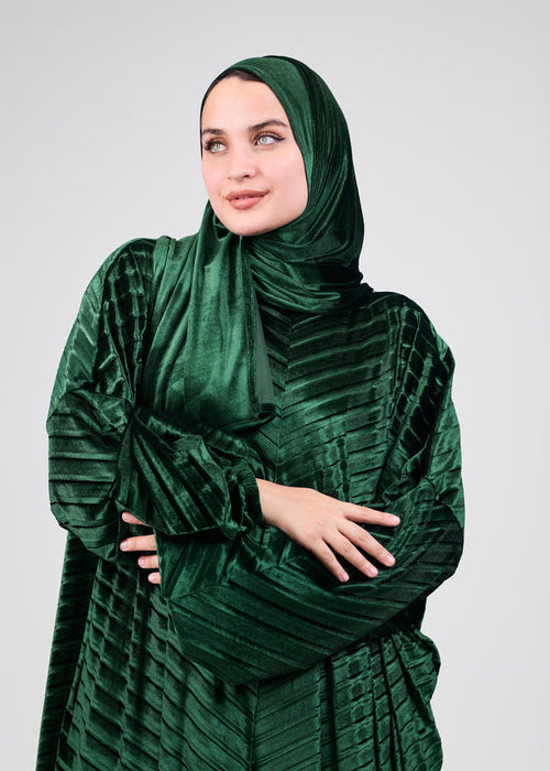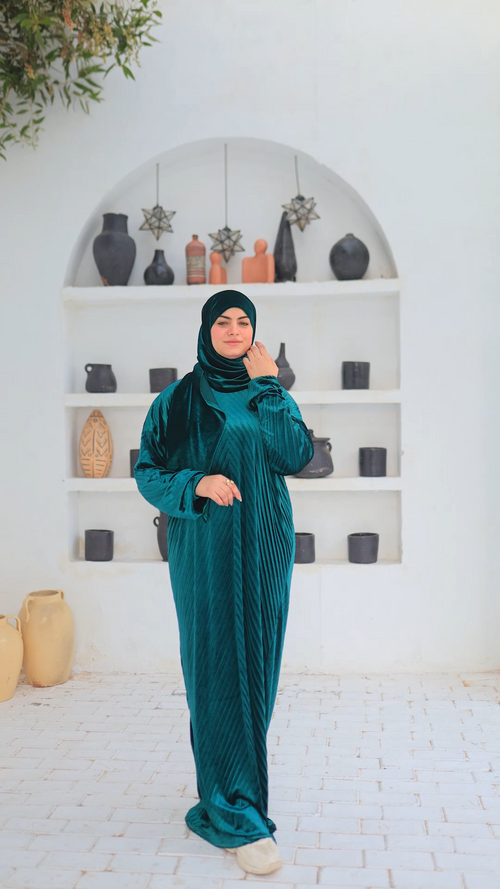Each abaya is spaciously tailored and includes an integrated veil, ensuring effortless style and comfort.